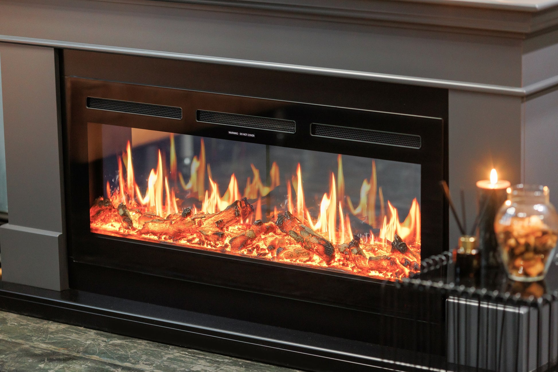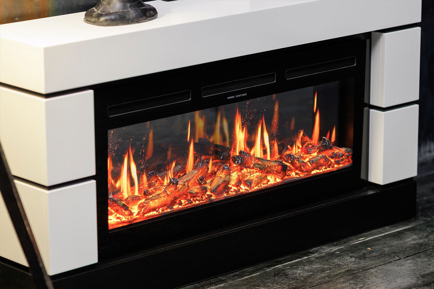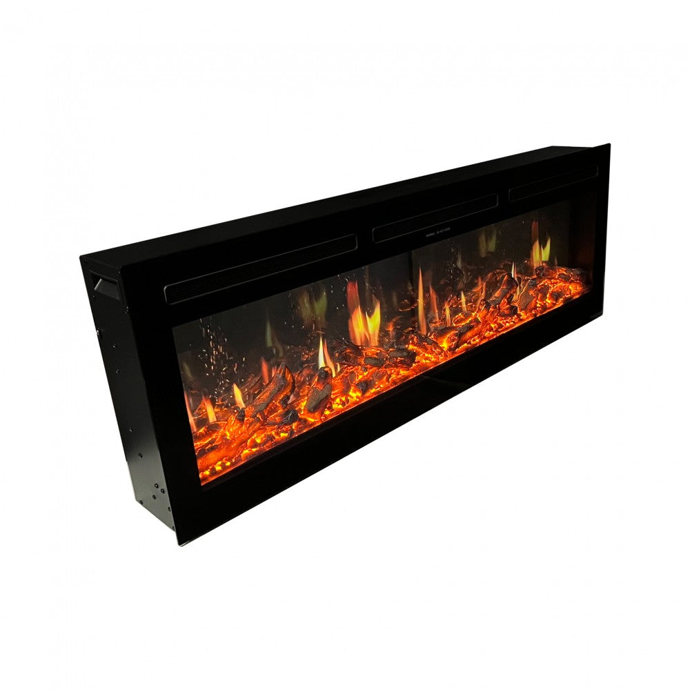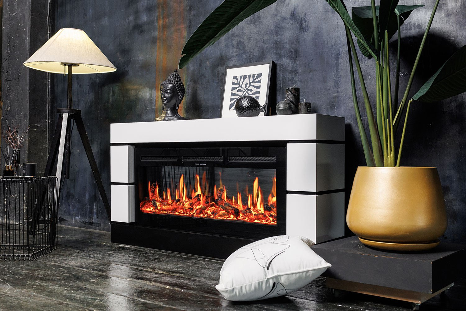 The Mystflame 5D V-Art 60 is a built-in electric fireplace with a realistic flame effect, thanks to a unique technology developed and patented by Mystflame. It comes with decorative logs simulating glowing embers, a crackling wood sound effect, and an integrated heater with thermostat.