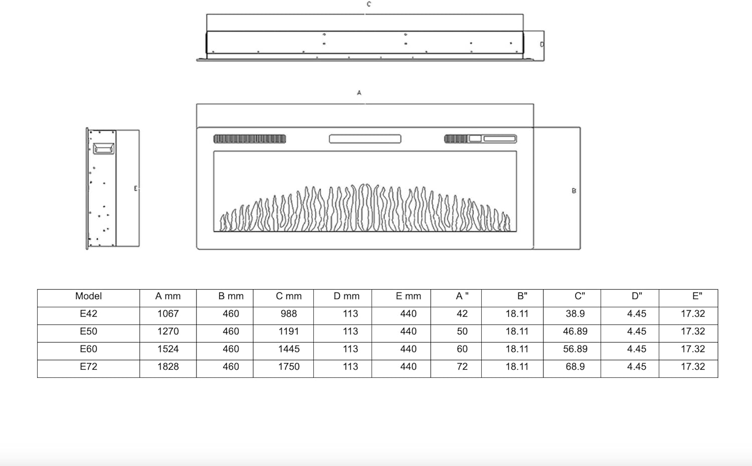 Technical specifications of the Weka Fireplace E60 built-in electric fireplace