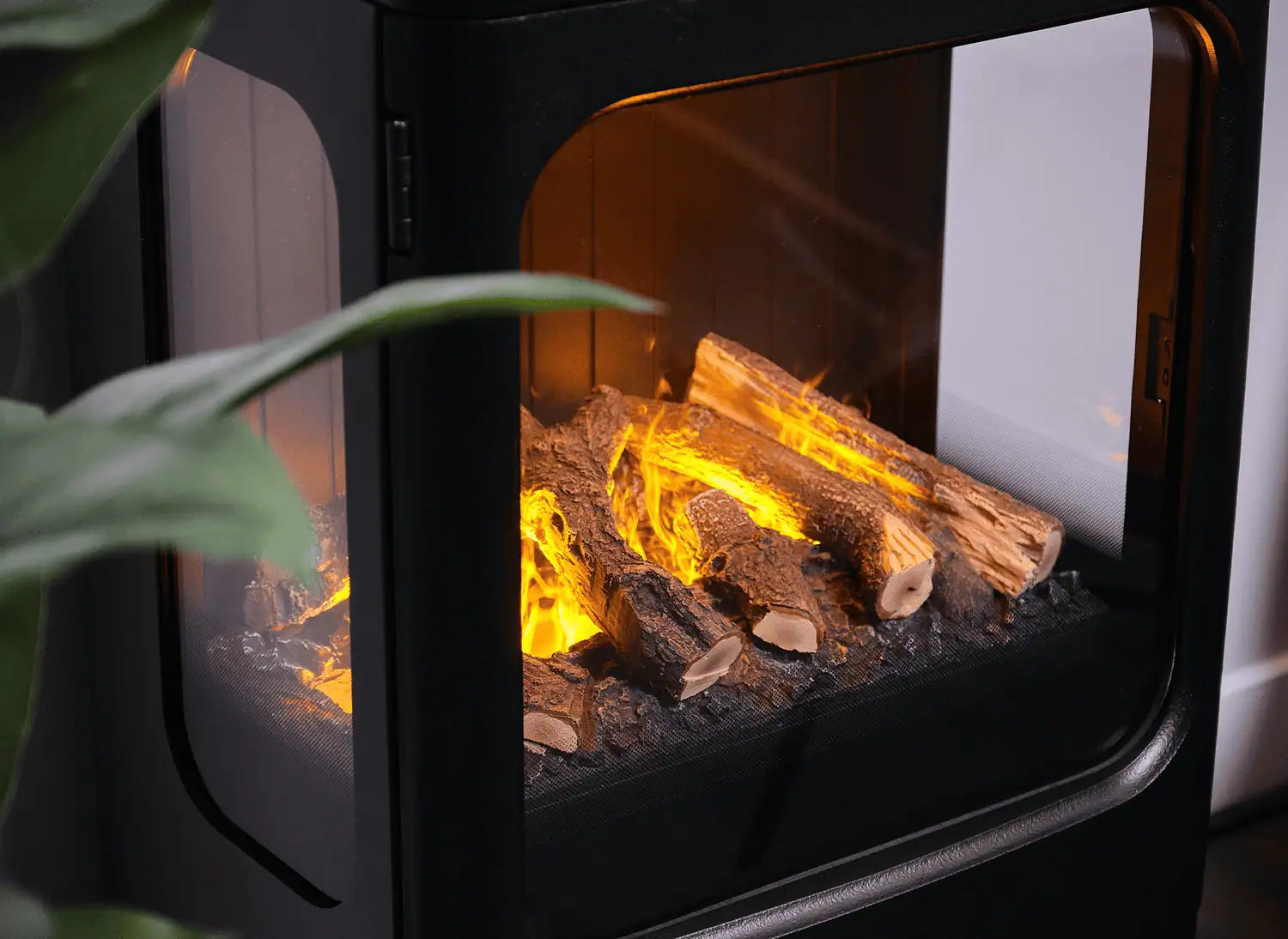 Uma característica distintiva deste modelo é a sua vista panorâmica de três lados. Os painéis laterais são de vidro, permitindo desfrutar do efeito da chama a partir de diferentes ângulos e tornando a lareira especialmente atraente no interior.