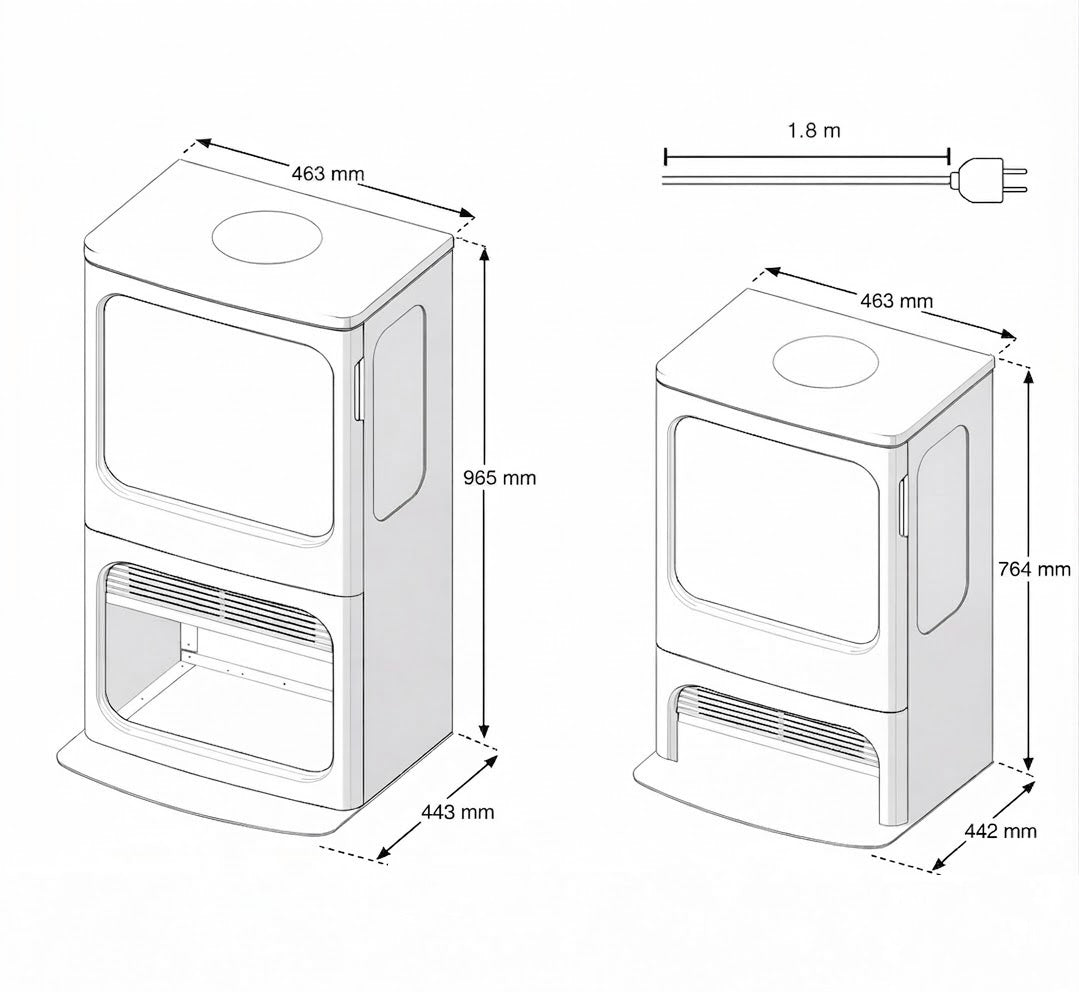 Dimplex Mapleton 80 está equipada com um ventilador aquecedor integrado com potência regulável de 1–2 kW e regulação da temperatura ambiente. Graças ao termóstato integrado, a lareira elétrica mantém automaticamente a temperatura definida, criando um microclima confortável e garantindo um consumo de energia mais eficiente. A função de aquecimento pode ser ativada conforme desejado e funciona de forma independente do efeito visual da chama.